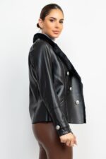 Faux Leather Button Detail Jacket